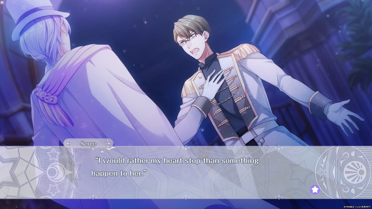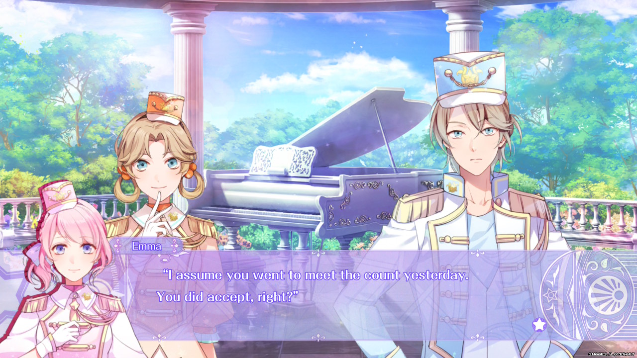 Kolejnym problemem, który strasznie mnie irytował, było to, że w przypadku połowy love interest wykorzystano dokładnie ten sam motyw nawiązania relacji. A dokładniej to Serge, Crier i Luciole nie chcą mieć z dziewczyną wiele wspólnego, mówią jej przykre rzeczy i chcą się skupić na swojej pracy… więc Emma z jakąś masochistyczną skłonnością zaczyna ich prześladować. Przeważnie przekupywać jedzeniem. Nie zmienia to faktu, że po raz kolejny zaczynałam się nudzić, bo ileż razy można wałkować to samo? Zwłaszcza że panowie cholernie przypominali mi obsadę innego, otomkowego tytułu – Code: Realize ~Guardian of Rebirth~, tylko w uproszczonym wydaniu. Dlatego Emma łazi za nimi, biadoli, że chce mieć super relacje, zaczyna im usługiwać, przynosi obiadki, trochę się upokarza, aż wreszcie, WRESZCIE, oni powstrzymują swoje burackie zapędy. Przeważnie są bowiem albo chłodni albo wprost niemili i agresywni. (Dordzy czytelnicy, nie róbcie tego w domu, jeśli ktoś mówi Wam NIE, to nie zamawiajcie na Allegro łomu i nie wbijajcie mu na chatę przez okno…).